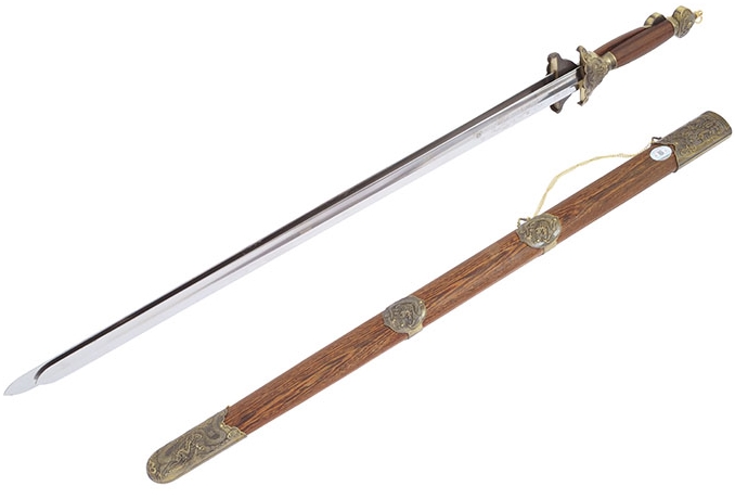 Dvojitý přímý meč, tuhý, nerezová ocel (horní řada), Jian Wang