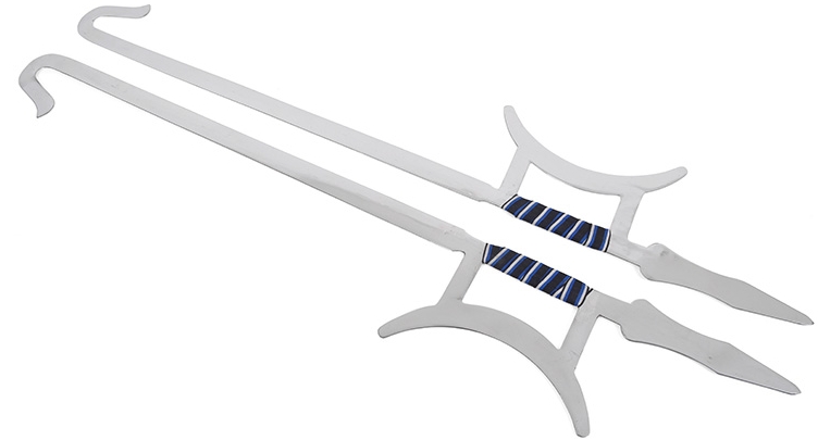 Dvojice háčků vhodných pro trénink «Shuang Gou» (meče se dvěma háky, severský styl).