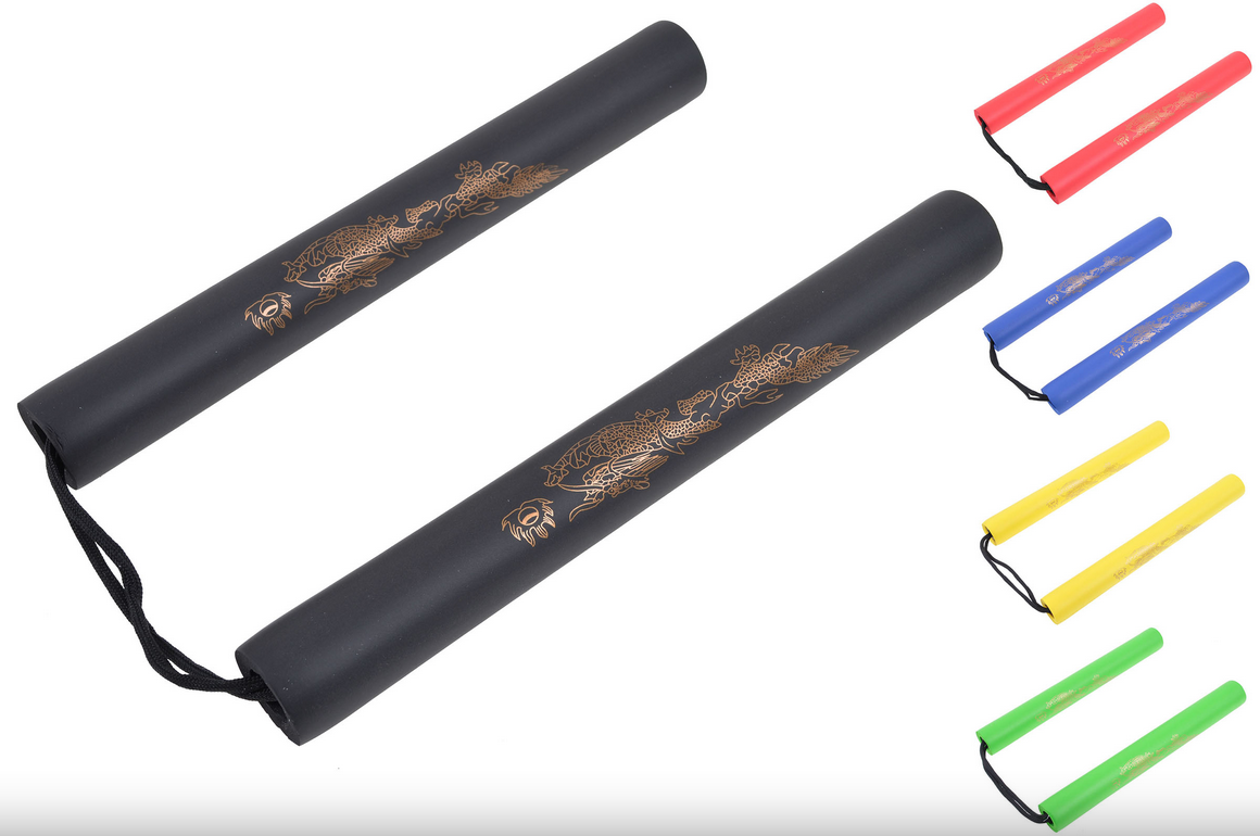 Lehké nunčaky, části z pěny a spojené dvojitým lanem. K dispozici několik barev a vzor zlatého draka. Správná volba pro začátečníky a děti.