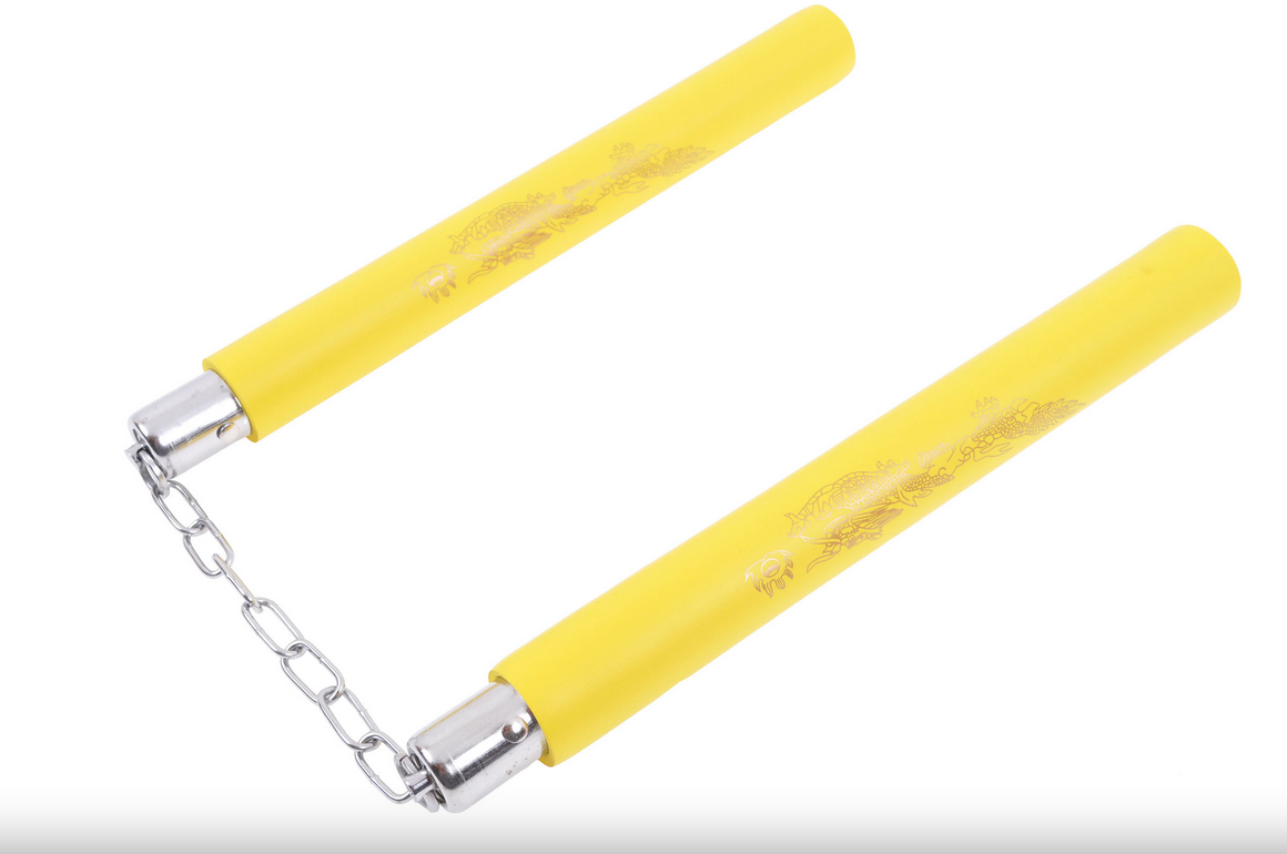 Lehké nunčaky, část vyrobená z pěny a spojená řetězem. Dostupné různé barvy a zlatý drak vzor.