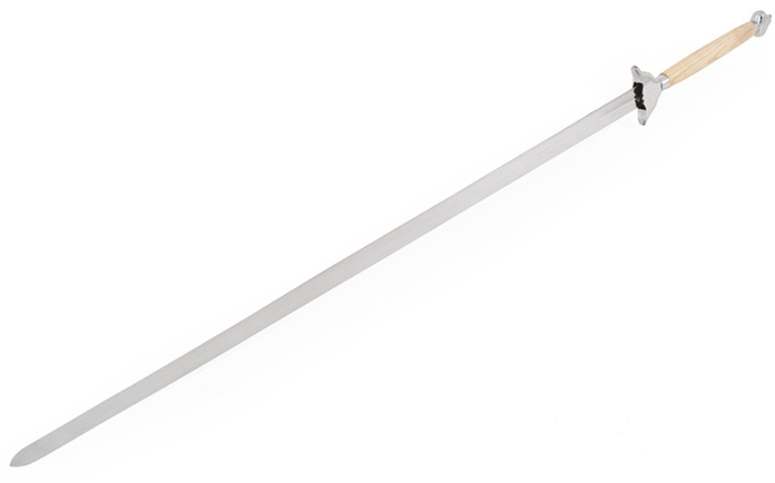 Obouruční meč, chromovaný galvanizací, čepel je polotuhá.