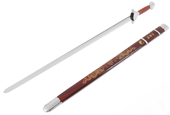 Přímý meč s pochvou, červený / stříbrný - polopružný