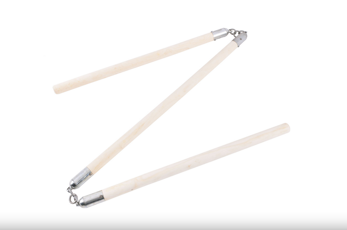Třísekční tyč vhodná pro moderní trénink „San Jie Gun“ (třísekční tyč, severní styl). Pružná hůl vyrobená ze dřeva, 3 sekce spojené řetězy.