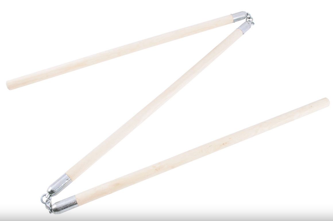 Třísekční tyč vhodná pro moderní trénink „San Jie Gun“ (třísekční tyč, severní styl). Pružná hůl vyrobená ze dřeva, 3 sekce spojené řetězy.