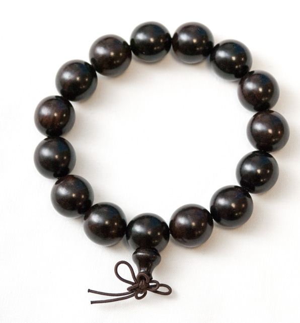 Náramek v tibetském buddhistickém stylu, složený z 15 dřevěných korálků