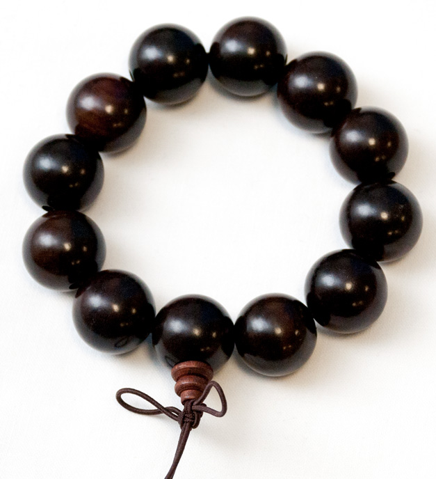Náramek v tibetském buddhistickém stylu, složený z 15 dřevěných korálků