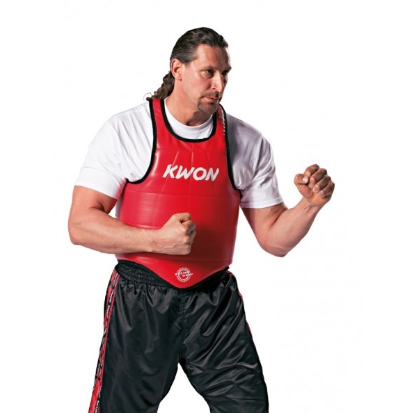 Vnější materiál je vyroben z tuhého vinylu s pěnovou výplní, která poskytuje dobré tlumení nárazů. Příjemná na nošení, se skvělou svobodou pohybu. Vesta je anatomicky tvarovaná v oblasti podpaží a rozkroku. Ergonomicky uzavíratelný systém vzadu splňuje bezpečností požadavky. Pásky vzadu jsou extra zesílené. Podle pravidel Wu Shu je jedna strana vesty červená, druhá černá.