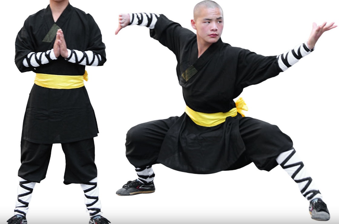 Tradiční šaolinská uniforma, vyrobená ve městě Dengfeng v provincii Henan.