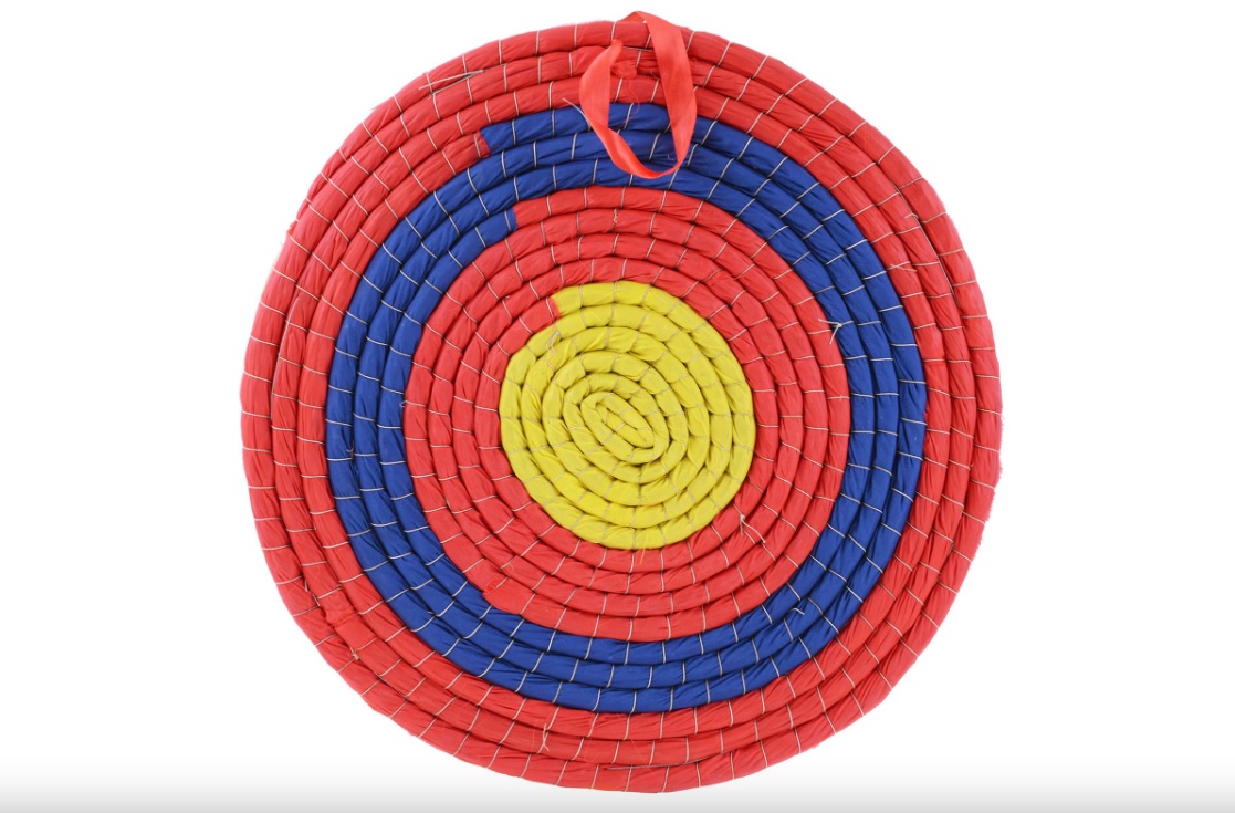 Tradiční ručně tkaný konopný slámový lukostřelecký terč.